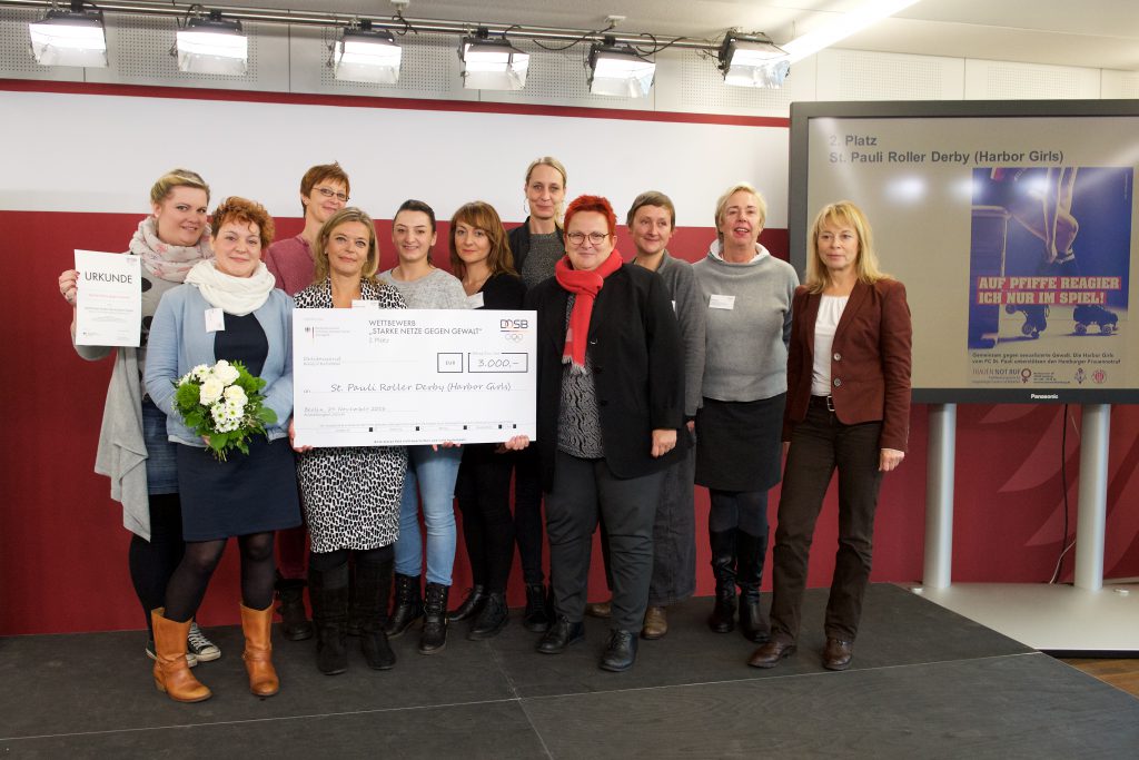 Beim diesjährigen Vereinswettbewerb des Deutschen Olympischen Sportbundes (DOSB) „Starke Netze gegen Gewalt 2016“ hat die Hamburger Kooperation des Notruf für vergewaltigte Frauen und Mädchen e.V. mit den Sportlerinnen der Harbor Girls des FC St. Pauli Rollerderby mit ihrer selbstgestalteten Plakatkampagne den 2. Platz gemacht! Weitere Informationen zur Preisverleihung finden Sie in unserer DOSB-Pressemitteilung.