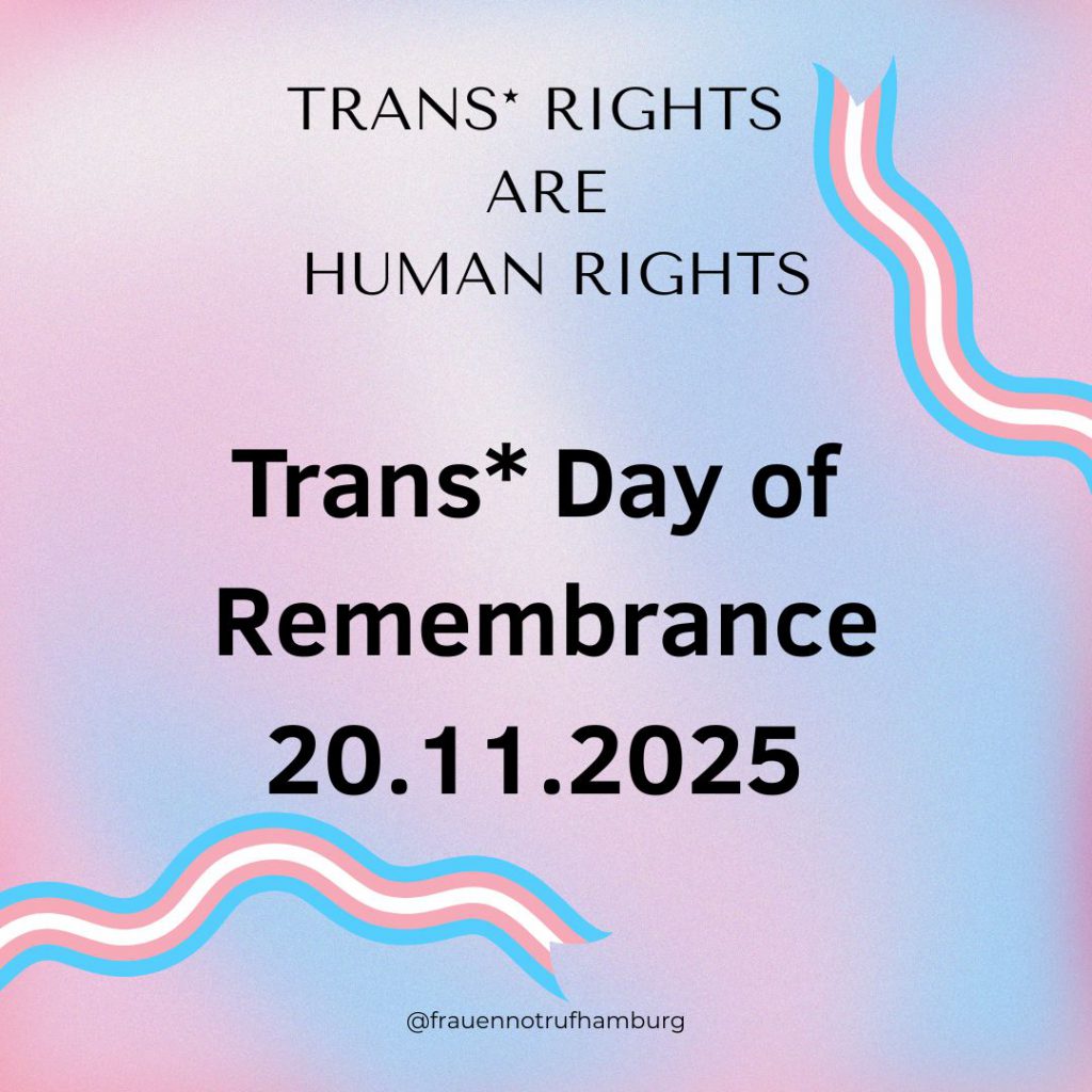 Der 20. November widmet sich jedes Jahr weltweit dem Gedenken an alle Personen, die durch trans*feindliche Gewalt und Diskriminierung ihr Leben verloren haben. Der Trans* Day of Rememberance, kurz TDOR, wurde als Gedenktag initiiert von der US-amerikanischen trans* Aktivistin Gwendolyn Ann Smith. Anlass war die bis heute unaufgeklärte Ermordung der afroamerikanischen trans* Frau Rita Hester […]